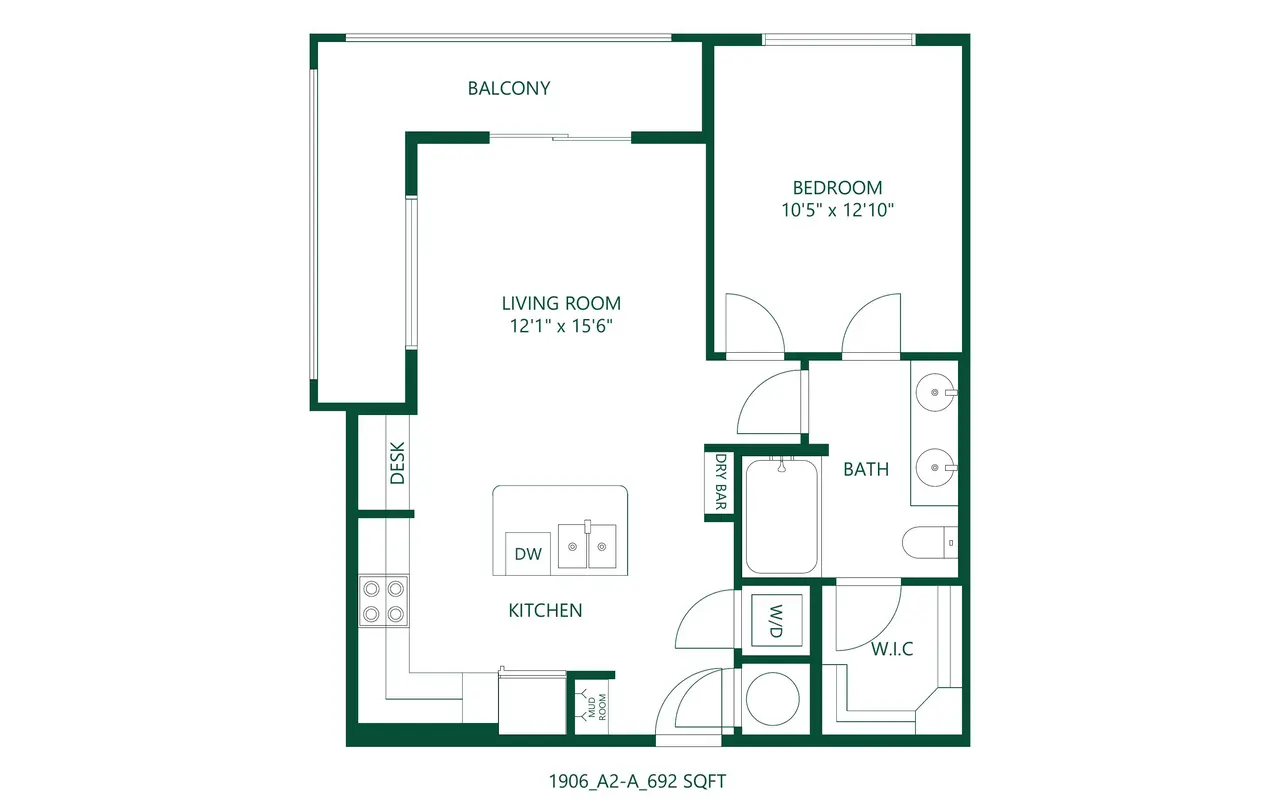 The 1906 offers a curated mix of studio, one-bedroom, and two-bedroom layouts, with square footages ranging from approximately 598 to 994 sq ft. Interiors feature dark quartz countertops, stainless steel appliances, high-efficiency HVAC systems, and luxury vinyl plank flooring throughout. Many units include built-in dry bars, mudroom storage areas, and desk nooks, ideal for hybrid or remote professionals. Every apartment also includes full-size washer and dryer hookups, spacious walk-in closets, and garden-style soaking tubs—perfect for renters looking for convenient, design-forward housing near downtown Dallas. Select units offer private patios or balconies, creating additional space to relax and enjoy the tree-lined charm of the Oak Cliff neighborhood.